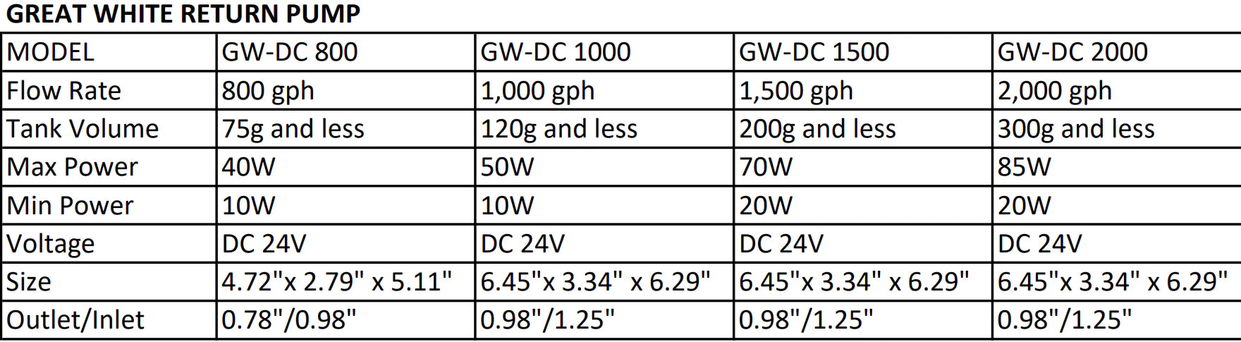 Great White DC Return Pumps - 5 model from 800 to 3000 gph